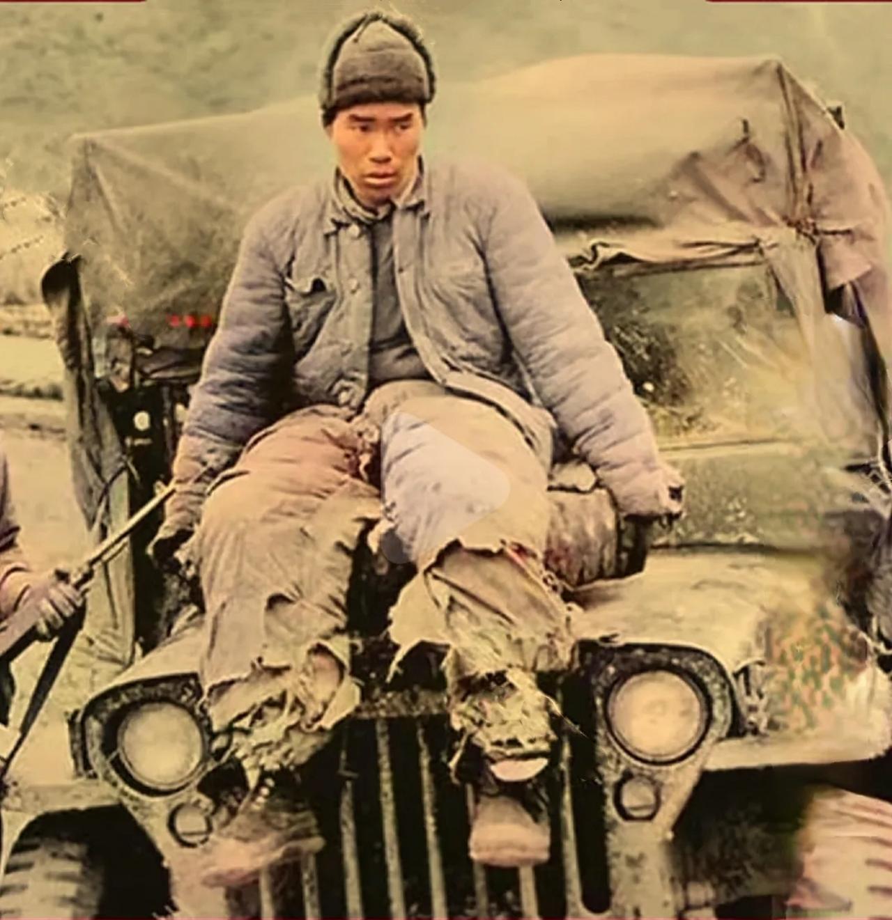 这张由好意思军拍摄的相片,定格了抗好意思援朝干戈中一幕令东谈主心碎的短暂。画面中Kaiyun,又名志愿军战士被俘后坐在车头轮胎上,双腿被牢牢系缚,体魄在严寒中显得无助而僵硬。