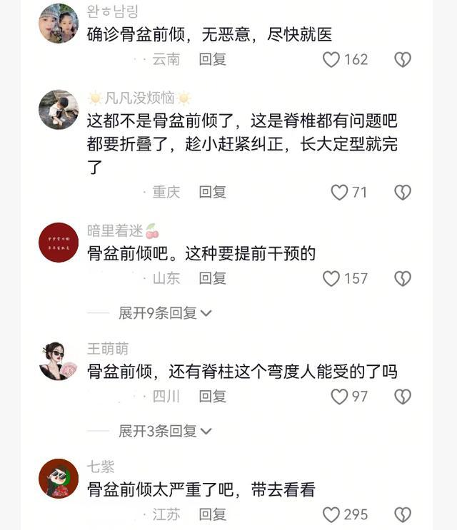 后脑勺又能弯追想,和屁股成一条直线。这种角度,说是骨盆前倾,齐是最轻的,很可能脊椎齐有问题。